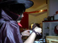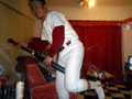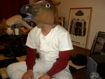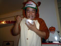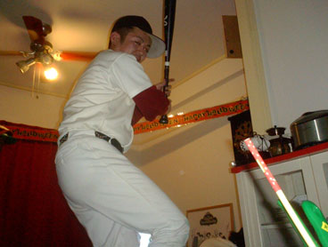 ちょっと早いですが、新居に引越したカズヒサ&キューの引越し祝いも兼ねてってことで、ハロウィンパーティーをしまっした。魔女やらサルやら何だかワカランのまで思い思いの仮装で登場。ワタクシはハロウィン無視した野球部での出陣と相成りました。