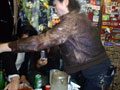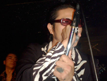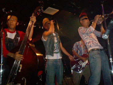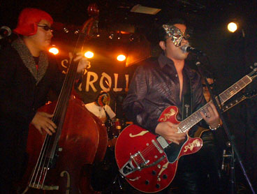 スコピメンバー総出で行ってまいりました。早速楽屋にご挨拶・・・で、ビールに泡盛。ライブも始まらんウチに完成したところで、ハロウィンってことで仮装して登場のデス虎キング!そして三重のサイコビリー番長FRANTIC