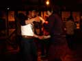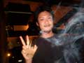 | 恒例の刈谷バードランド。いつもより早めに到着してみると「ん?」ココでは見慣れない後姿が・・・「アレー!?なんでいるのよ?」なんとスコピDJのRYOでした。いつもは誘っても家が遠いからってゼッタイ来ないのに!今日は彼女とのメデタイDAYらしく、コッチの方で遊んでいたらしいです。イヤーなんか新鮮ですわぃ。さらに本日からバードランドにダーツ登場。早速、参加費1,000円優勝者総取りにてゲーム開始。1回戦・・・勝者ムケ。チクショウ。ちょっと時間おいて第2回戦・・・勝者ムケ。ふざけるな!もう1回だ!・・・勝者ムケ。マッタク!金が掛かると力発揮しやがって!もうダーツなんて2度とやらねー。チックショウ! |