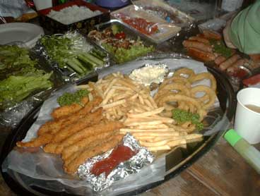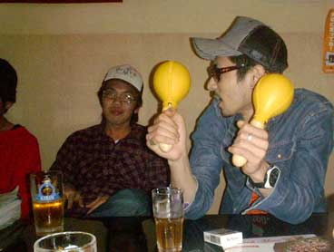 今日はお花見パート2!やっぱオレ雨男なのかな?しっかりアメアメでしたわ。池のほとりの小さな屋根のあるベンチにミンナで小さくなって手巻きパーティー。遅れて登場のワタクシは、ハタから見てカワイソウになったわ、んで寒い!そして行く前にマック喰ってハラいっぱい!ってことで早々に花見を切り上げてカラオケに移動。散々唄って大満足ですわー
