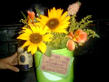 スコピ7周年ドレスアップスペッサル!イヤー大成功でした。メチャメチャ楽しかったわー!ミナサマ期待通りのドレスアップでホールの雰囲気もサイコーだったし、パティシエのスーさんが作ってくれた7周年特製ケーキもンマかったー。オサム君からのテキーラに始まり、バードランドのマスターからのチンザノ、二ノ宮君達からのお花、JB'Sからのシャンパンなど数々の差し入れまで頂いて感無量です(泣)ナニヨリ遊びに来てくれたミンナ、本当にありがとー!!これからもがんばっていきますのでどうぞよろしゅー!