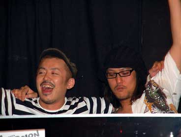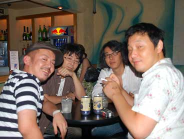 ニコさん達のノーボーダーな選曲に、我らスコピメンバーも思いっきり影響を受けなんだか懐メロックな空間。みんなテキトー英語ですが終始大合唱。いつものように身体はボロボロなのはイイとして、今回はそれにも増してノドがイタイ。それにしてもホントに楽しかった!また是非是非やりたいっす!